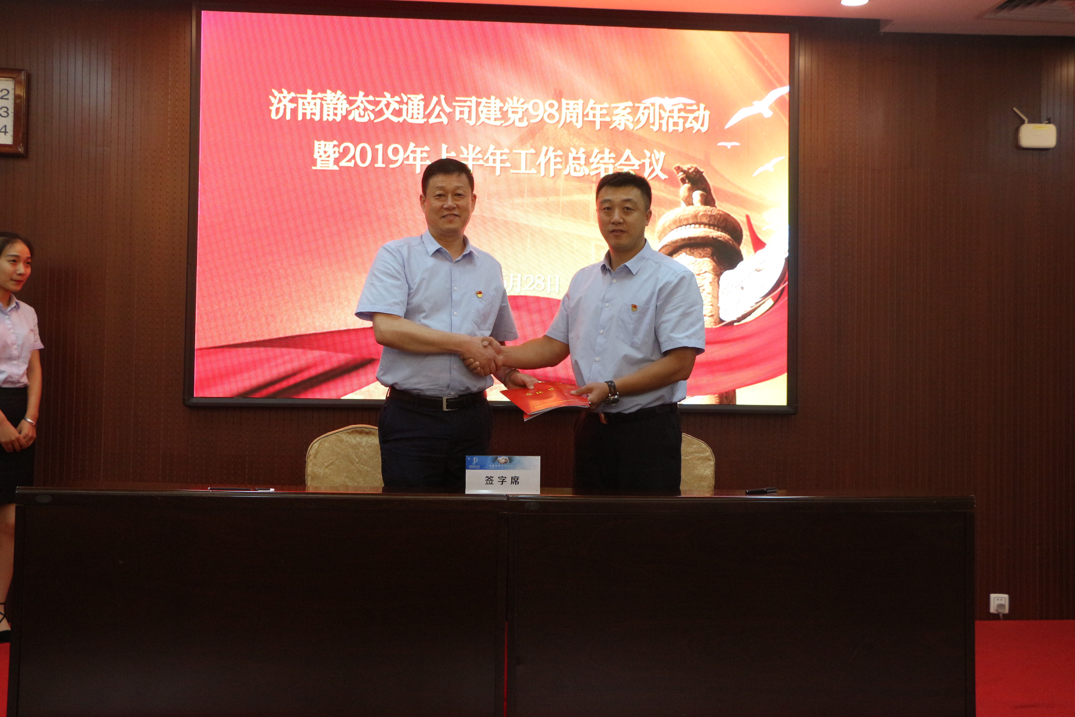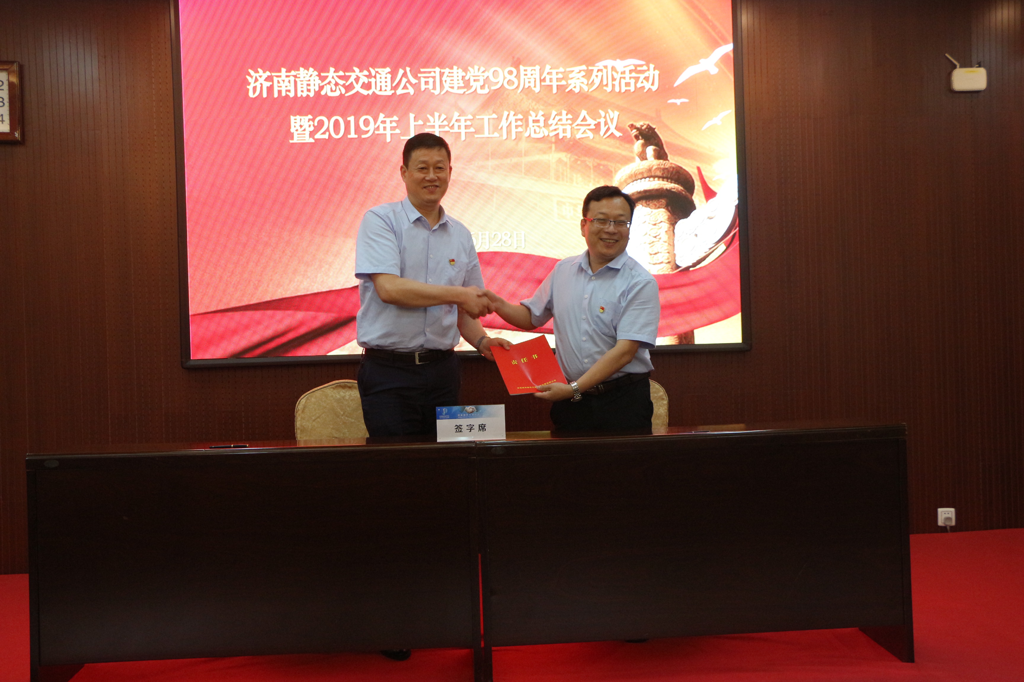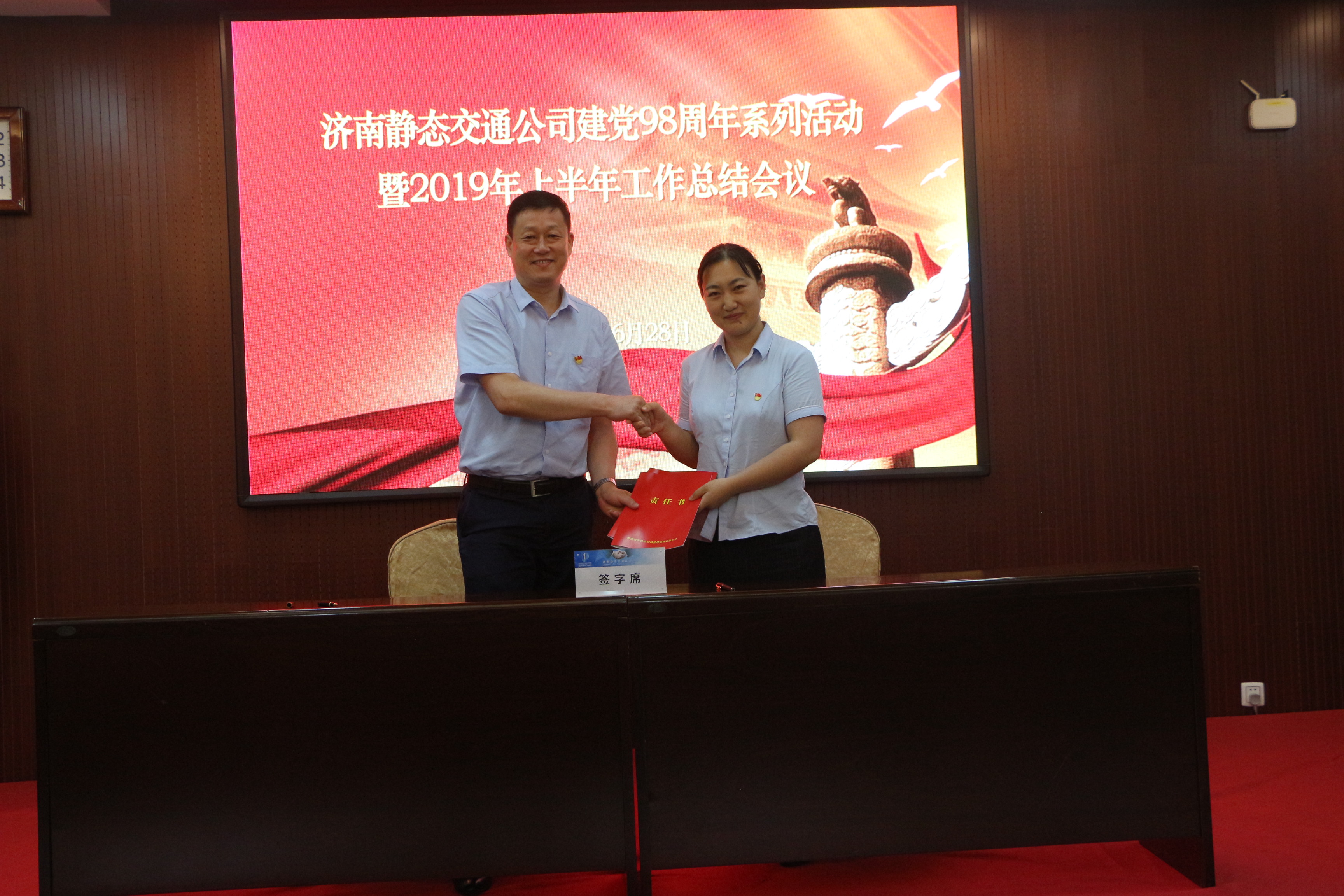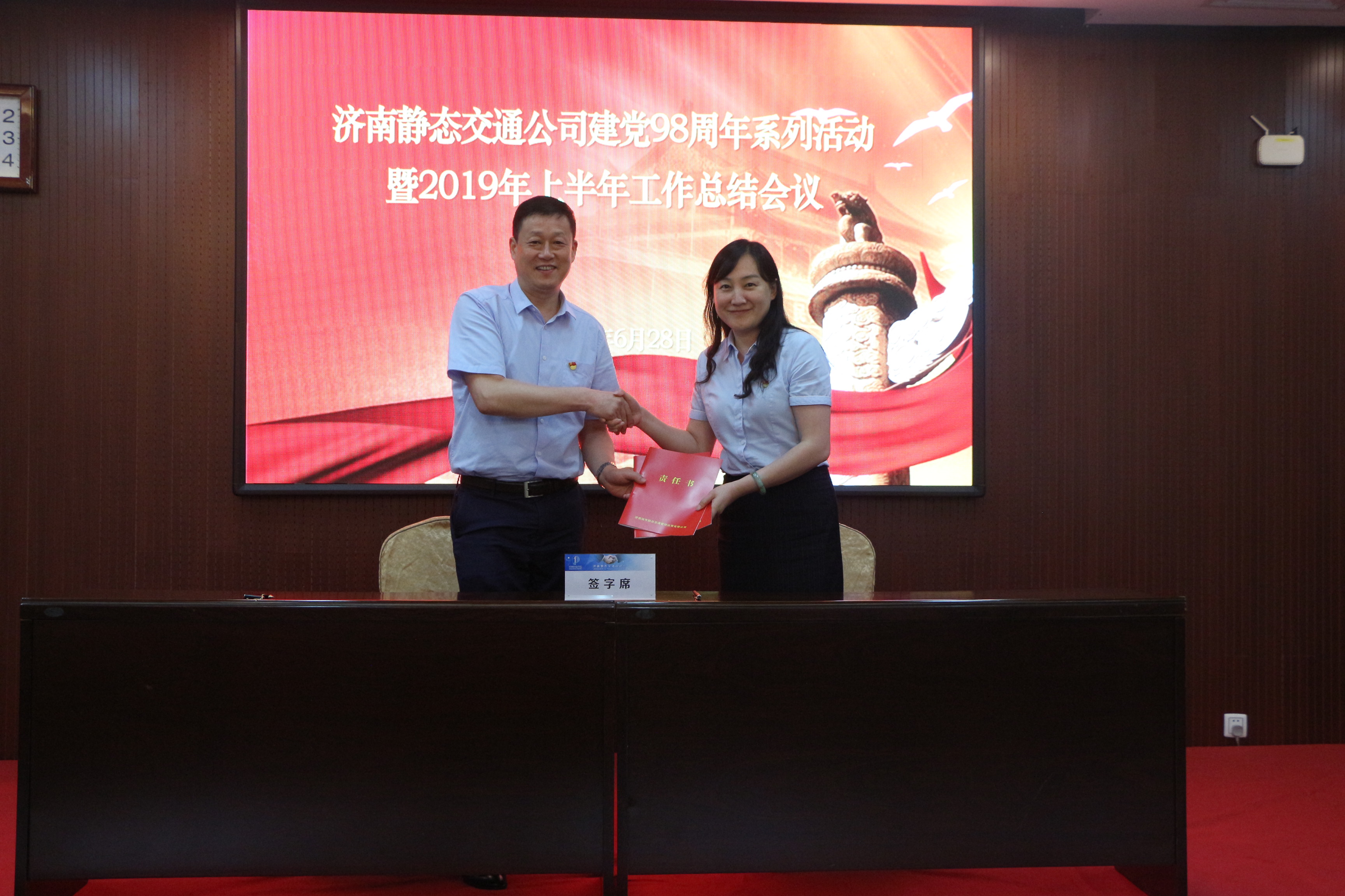 6月30日下午,濟(jì)南靜態(tài)交通集團(tuán)與歷城交警大隊(duì)在“七一”前夕,隆重舉行了“牢記初心使命、共譜警企新篇”黨建共建簽約啟動(dòng)暨共建基地揭牌儀式。此次活動(dòng)是濟(jì)南靜態(tài)交通集團(tuán)與歷城交警大隊(duì)圍繞“立足民生,為群眾解決停車難、停車亂問(wèn)題”的目的,創(chuàng)新黨建工作形式和載體的一次全新嘗試,是全面貫徹落實(shí)“不忘初心、牢記使命”主題教育活動(dòng)精神的全新舉措,也是雙方以黨建引領(lǐng)促進(jìn)拓寬交流渠道、深化警企合作,實(shí)現(xiàn)共融、共
