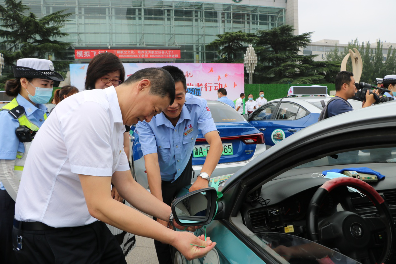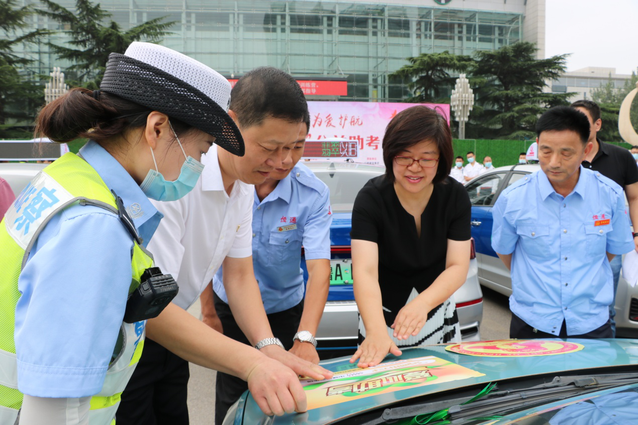此次助考活動,舉辦方還為愛心助考車輛準(zhǔn)備了愛心助考貼和綠絲帶標(biāo)識。李培鋼董事長與濟(jì)南廣播電視臺黨委委員、副臺長許偉、濟(jì)南市公安局交警支隊副支隊長趙洪銘等領(lǐng)導(dǎo)一同來到送考車輛前,為助考車輛貼上了愛心助考貼、綁上綠絲帶,標(biāo)志著愛心助考活動正式啟動。